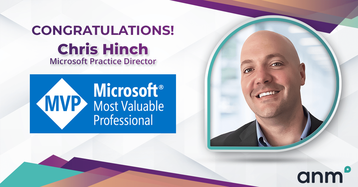 ANM is proud to congratulate Chris Hinch, Microsoft Practice Director, for being recognized as a Microsoft Most Valuable Professional (MVP). The MVP award honors individuals who actively contribute to the technology community by sharing their knowledge and expertise around Microsoft technologies. It is one of Microsoft’s highest distinctions, and we are thrilled to see Chris achieve this honor.